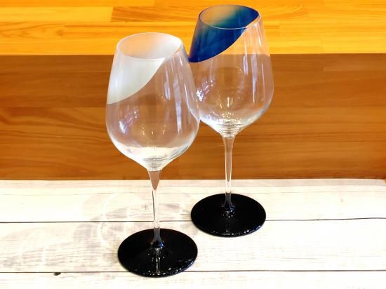 ホワイトのアクセントをデザインしたワイングラス。赤ワインにもも白ワインにも適したグラスです。