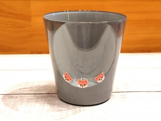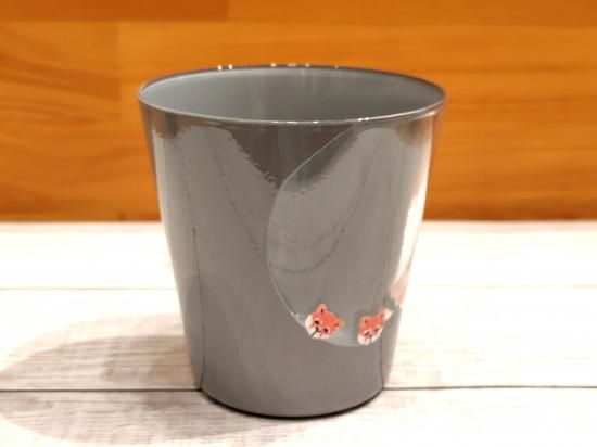 お月見グラスに3匹の子犬を描きました。丸い窓から飲み物が見えます。