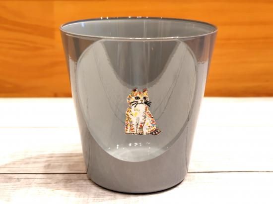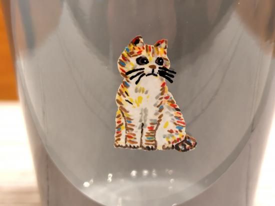 お月見グラスにネコを描きました。丸い窓から飲み物が見えます。
