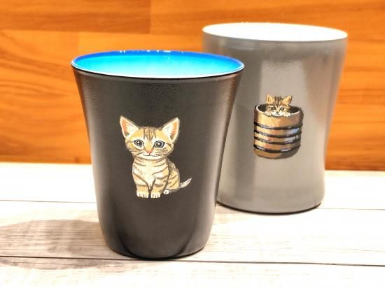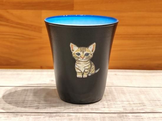 フリーグラスに子猫を描きました。プレゼントや会津のお土産としてもオススメです。