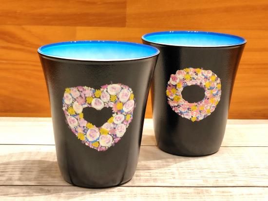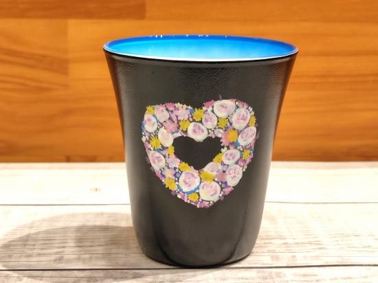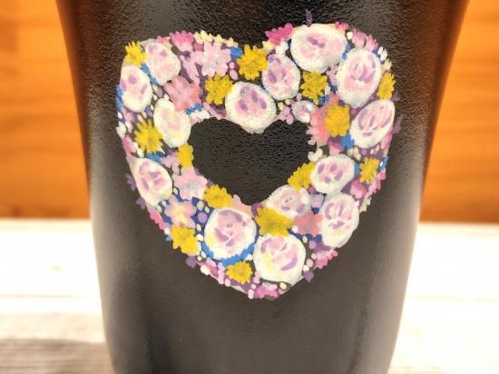 フリーグラスにハートのフラワーリースを描きました。プレゼントやお土産としてもオススメです。