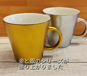 金と銀のマグカップ 塗り上がりました 2025.12.25 ブログ直営店からのお知らせ こちらの商品の紹介動画をインスタグラムにアップしました!オンラインでのご購入を希望される方は、お手数ですがこちらのお問い合わせページでその旨をお伝えください。